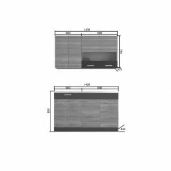 Alphab2b Κουζίνα Modest Σετ 3 Κουτιών Γκρι Άνω Κουτιά 140cm Κάτω 80cm