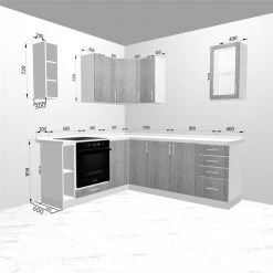 Alphab2b Κουζίνα Hrystyna Σετ 5 κουτιών Σονόμα-Γραφίτης 180 Cm πάνω 120 Cm κάτω TO-HRYSTYNA