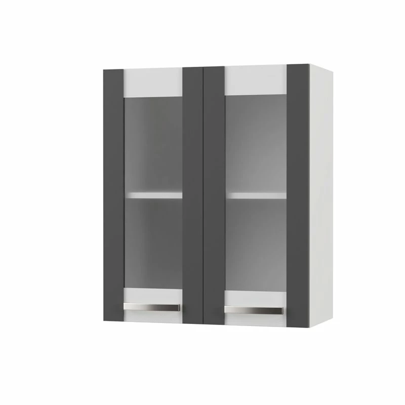 Πάνω Ντουλάπι Κουζίνας Με Τζάμι 60×30.5×71.8 εξαιρετικής ποιότητας και υψηλής αντoχής σε απόχρωση Γραφίτη. Το έπιπλο διαθέτει δύο ανοιγόμενα φύλλα με τζάμι και ένα ράφι εσωτερικά. Διακοσμήστε και οργανώστε την κουζίνα σας με μοντέρνο και πρακτικό τρόπο, χαρίζοντας κομψότητα και φινέτσα.