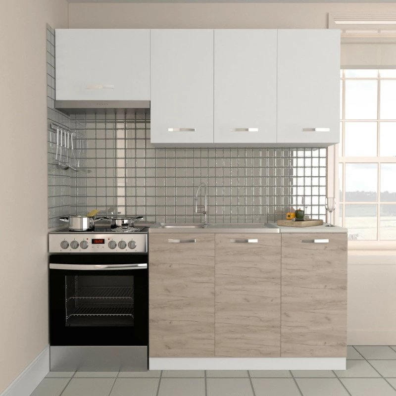 Alphab2b Κουζίνα Charlotte Σετ 3 Λευκή-Φυσ. Δρυς με μεταλλικά χερούλια Σετ 5 κουτιών 3 τρέχ. Μέτρα
