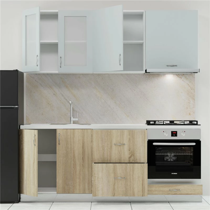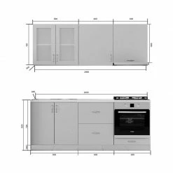 Alphab2b Κουζίνα Modest Σετ 6 Κουτιών Γκρι-Σονόμα Άνω Κουτιά 200cm Κάτω 200cm