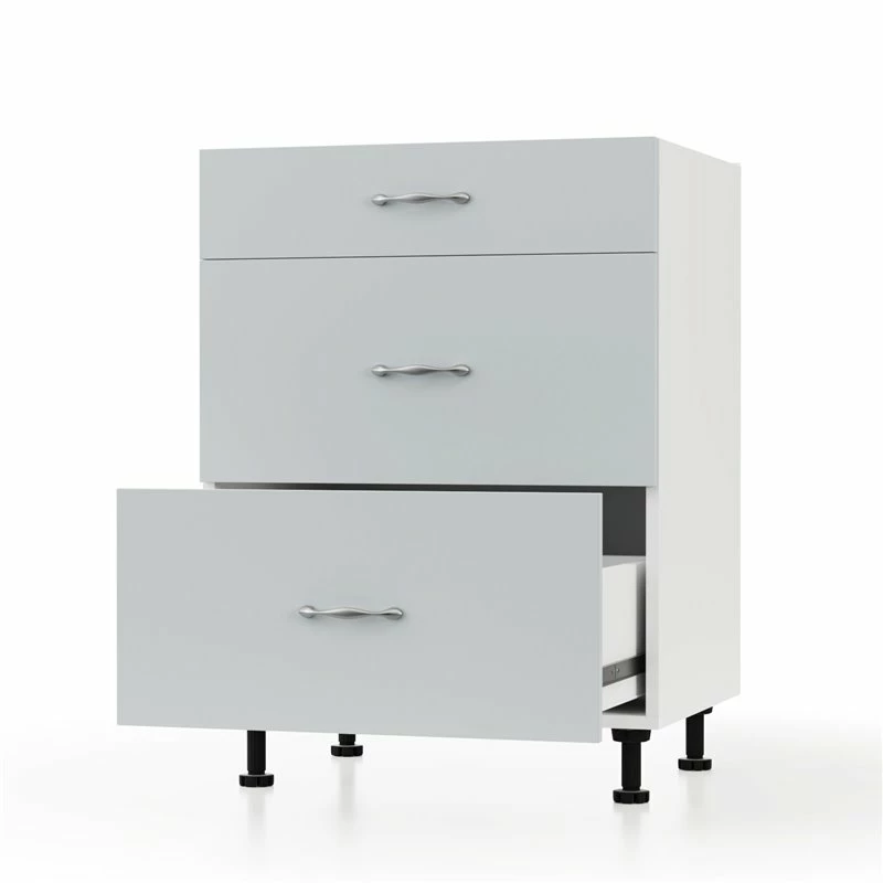 Modest Επιδαπέδιο Ντουλάπι, Ευρωπαϊκής κατασκευής, εξαιρετικής ποιότητας και υψηλής αντοχής σε γκρι απόχρωση. Το έπιπλο διαθέτει τρία συρτάρια για την αποθήκευση αντικειμένων καθώς και τρία μεταλλικά χερούλια. Μπορείτε να το συνδυάσετε με τα υπόλοιπα ντουλάπια κουζίνας της σειράς Modest.