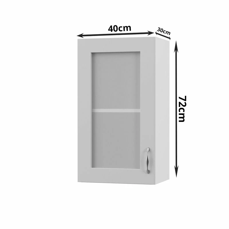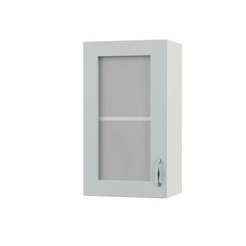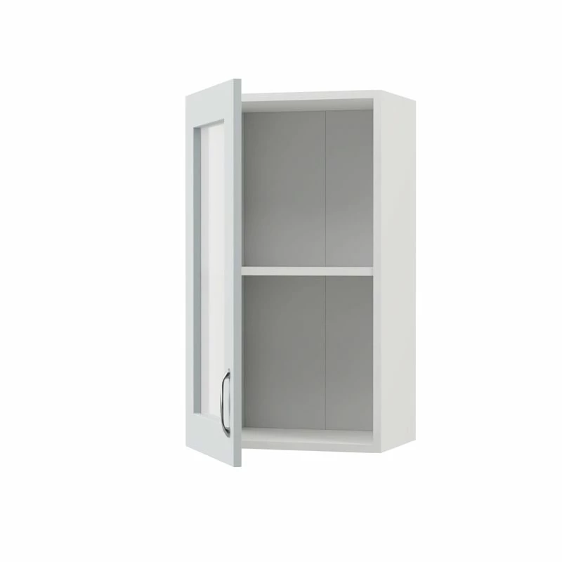 Επιτοίχιο Ντουλάπι-Βιτρίνα Modest, Ευρωπαϊκής κατασκευής, εξαιρετικής ποιότητας και υψηλής αντοχής σε γκρι απόχρωση. Το έπιπλο διαθέτει, ένα ανοιγόμενο πορτάκι με τζάμι, ένα ράφι για την τοποθέτηση αντικειμένων καθώς και ένα μεταλλικό χερούλι. Μπορείτε να το συνδυάσετε με τα υπόλοιπα ντουλάπια κουζίνας της σειράς Modest.