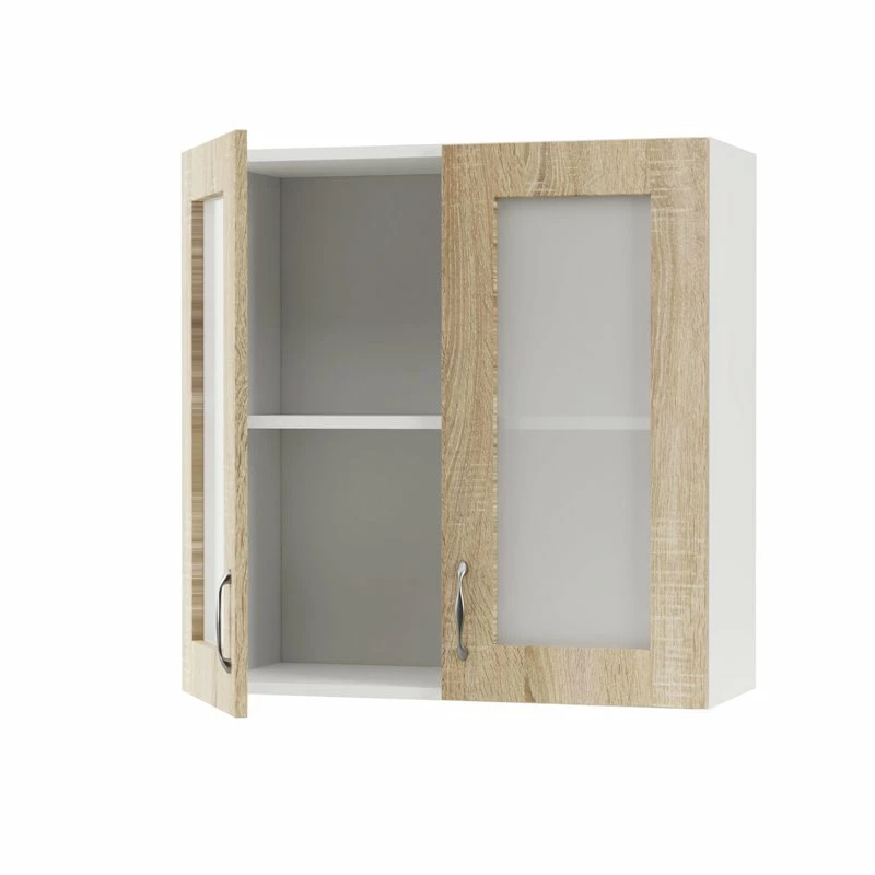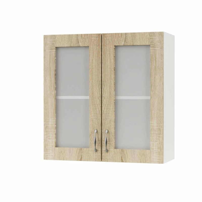 Επιτοίχιο Ντουλάπι-Βιτρίνα Modest, Ευρωπαϊκής κατασκευής, εξαιρετικής ποιότητας και υψηλής αντοχής σε σονόμα απόχρωση. Το έπιπλο διαθέτει, δύο ανοιγόμενα πορτάκια με τζάμι, ένα ράφι για την τοποθέτηση αντικειμένων καθώς και δύο μεταλλικά χερούλια. Μπορείτε να το συνδυάσετε με τα υπόλοιπα ντουλάπια κουζίνας της σειράς Modest.